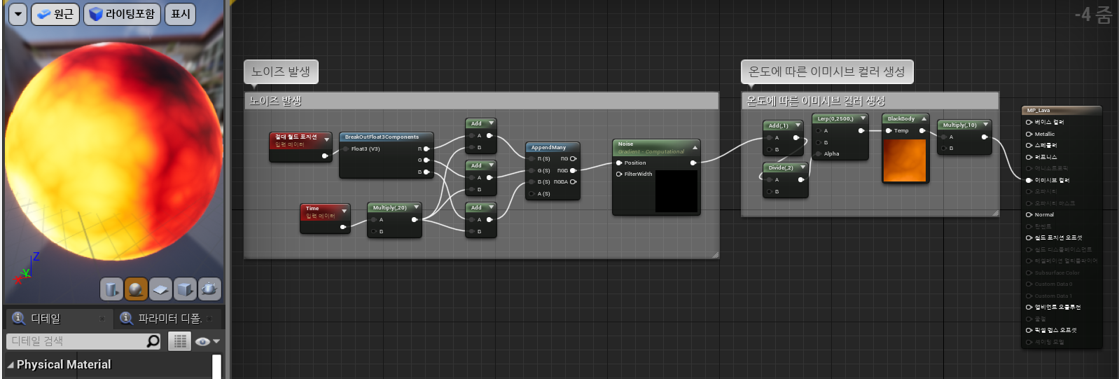 온도에 따른 이미시브 컬러 적용, 노이즈 발생, 텍스쳐이동