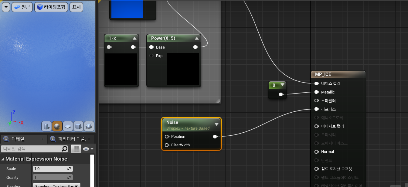 다음으로 러프니스에 Noise패턴을 적용해봅시다. 일단 Metallic은 0으로 지정해놉니다. 자세히 보면 빛 방향에 따라 노이즈 패턴이 나타나는것을 확인할 수 있습니다.