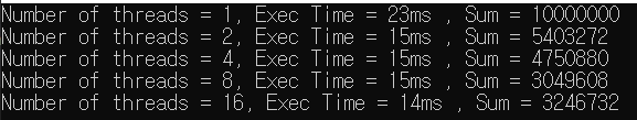 1. 앞의 프로그램을 싱글코어에서 동작시키면 결과가 잘나오는가? (X)