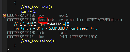 - _asm lock add sum, 2;