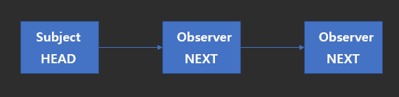 현재 Subject는 Observer의 포인터 배열을 들고 있습니다. 이떄 관찰자 객체가 연결리스트의 노드가 되어 연결리스트 형식을 이룹니다.