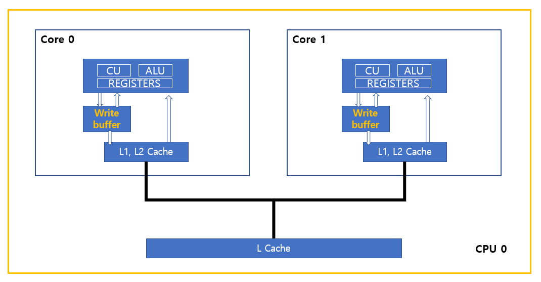 ( Cache는 동기화가 되고 있지만 Write Buffer까지는 동기화되고 있지 않습니다. )