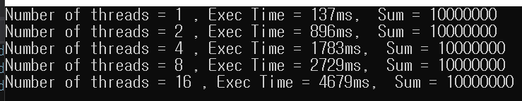 쓰레드가 늘어나면 늘어날수록 성능이 떨어짐