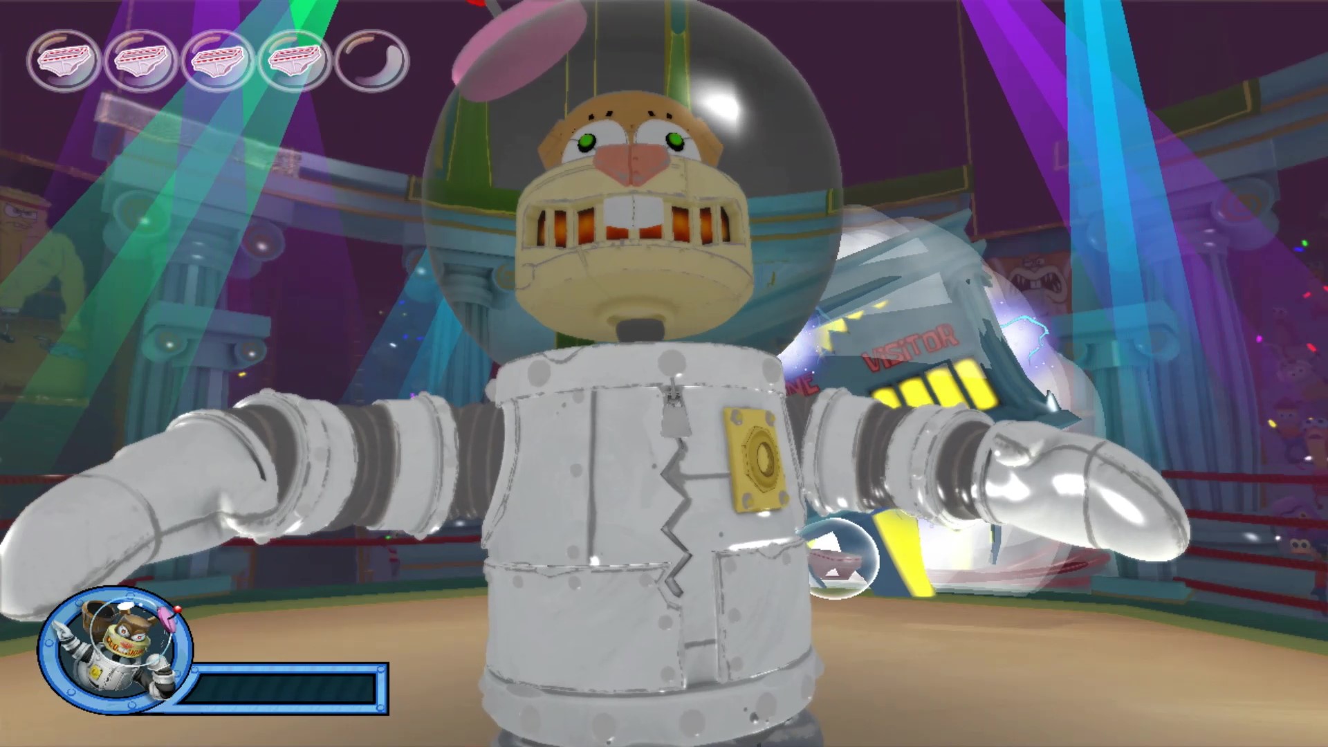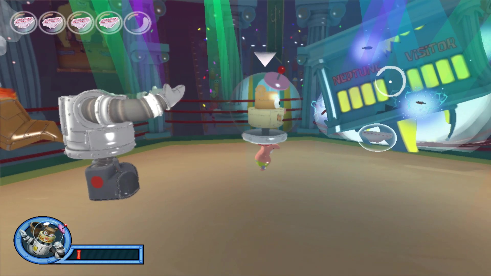 캐릭터가 스폰지밥에서 뚱이로 플레이 변경됩니다. (뚱이는 이단점프대신, 물건을 집어서 던질 수 있습니다.)