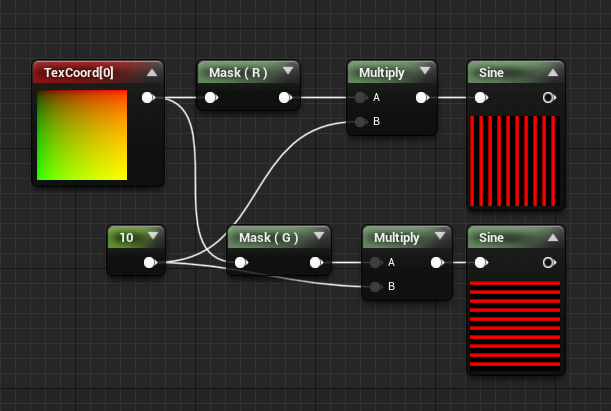 texC의 r,g 채널을 분리해 주기를 변경하여 sine적용을 해줍니다.